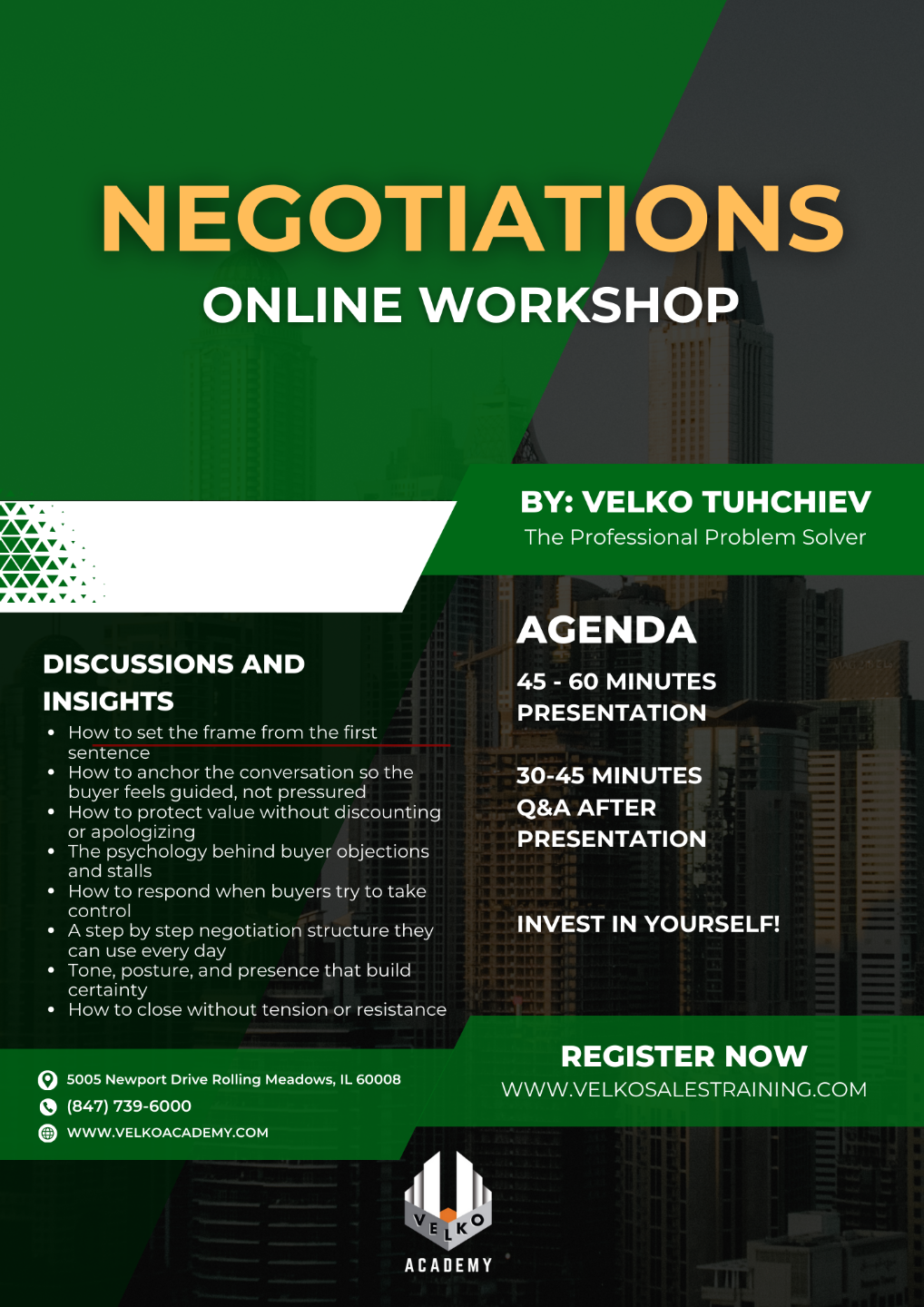 Invest in your future and watch your life change with Velko Academy's ONLINE WORKSHOPS. Don't miss out on this opportunity to achieve unprecedented success in your business.